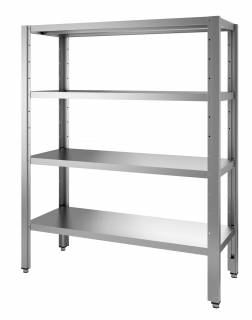 Scaffale da 1,8 mt.con 4 ripiani lisci destinati alla conservazione di merci all'interno delle cucine professionali.